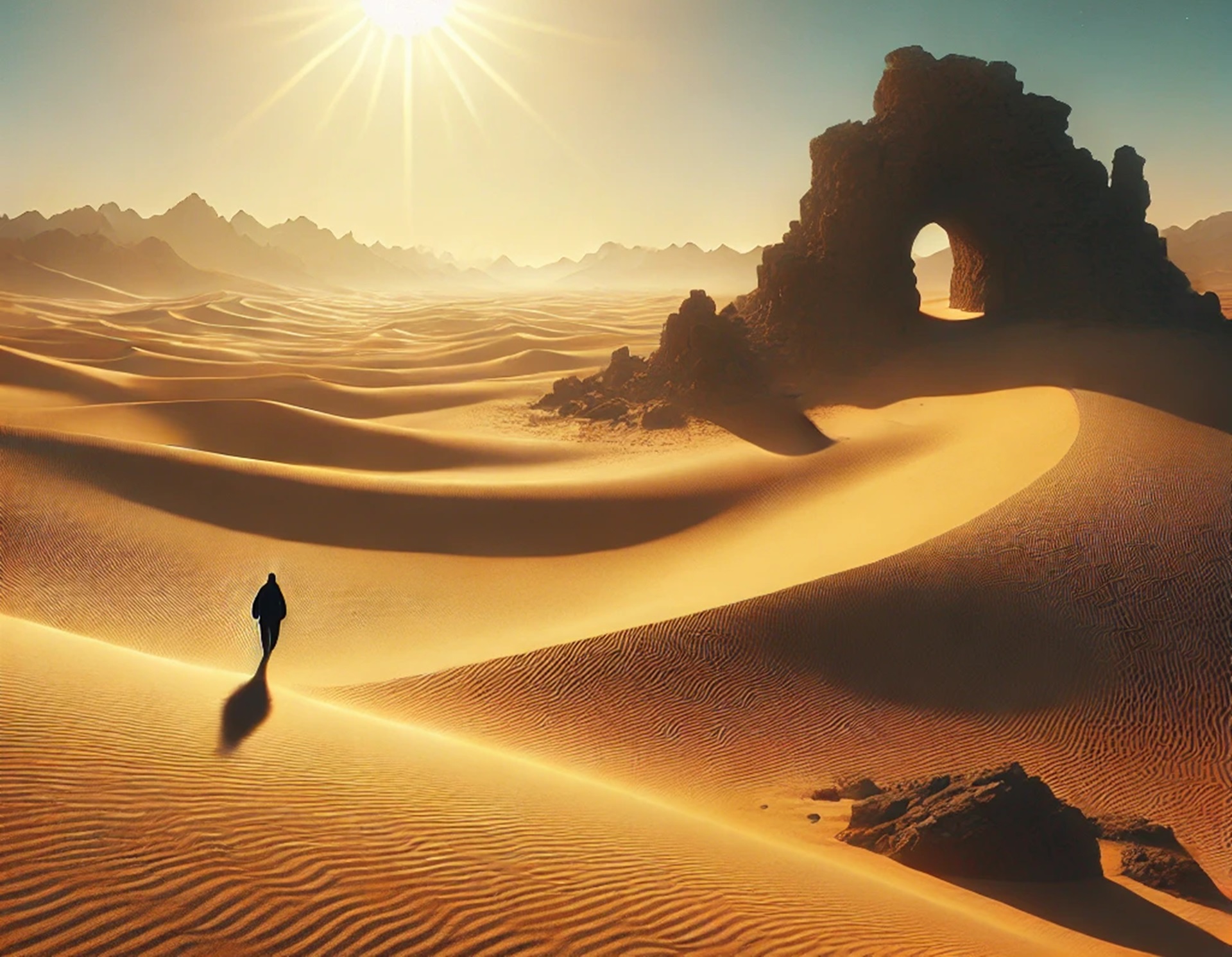 Once in a desert, a traveller roamed the desert for a good place to camp. Then he saw a cave. Inside, it was pitch black. So he set camp next to the cave because it was getting dark. While sleeping all night, he thought about the cave.